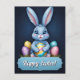 Cute Blue Little Easter Rabbit Happy Easter Holiday Postcard