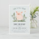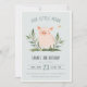 Cute Blue Little Farm Pig Butterfly Kids Birthday Invitation