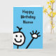Cute cartoon card with a happy smiling face popping in from the side of the card and waving. Card has a blue background but it's easy to edit this to a different colour. Easily personalise this card by editing the template text on the front and inside. Thanks for viewing my designs. V2
