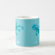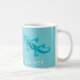 Cute Blue Lizard Gecko Name Mug for Kids. The gecko is blue and has dark spots. The background is bright blue. Personalise with your name. Great for kids who love geckos and animals.
