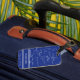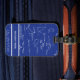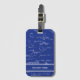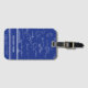 Unique luggage tag with a pattern of mathematic equations and graphics over a royal blue background. Personalize the tag with your name. Illustrated and designed by Patricia Alvarez.