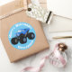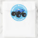This cute blue monster truck is ready for birthday party racing action. High octane race trucker fun drawn in happy cartoon style!