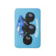 This cute blue monster truck is ready for racing action. High octane race trucker fun drawn in happy cartoon style!