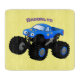 This cute blue monster truck is ready for racing action. High octane race trucker fun drawn in happy cartoon style!