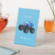 Cute blue monster truck cartoon illustration pedestal sign