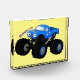 This cute blue monster truck is ready for racing action. High octane race trucker fun drawn in happy cartoon style!