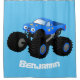 This cute blue monster truck is ready for racing action. High octane race trucker fun drawn in happy cartoon style!