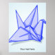 Cute blue origami paper crane poster