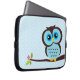 Stylish electronics sleeve features a beautiful vector illustration of an owl perched on a tree branch.