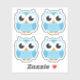 Stickers featuring a cute, blue cartoon owl. Sheet with four stickers.