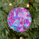 Cute blue pink flowers patterns ceramic tree decoration