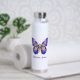 Cute Blue Pink Gold Butterfly Floral Name Water Bottle