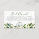 Asks guest to bring a book instead of a card with this pumpkin theme book request card. It features a blue watercolor pumpkin with white flowers and greenery. Personalise by adding your own texts. This pumpkin books for baby card is perfect for spring and fall baby showers.