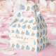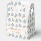 Cute fall boy baby shower thank you favour box. This design features a modern calligraphy script font, blue pumpkins and green Eucalyptus branch pattern.