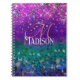 Cute blue purple ombre glitter monogram notebook