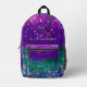 Cute blue purple ombre glitter monogram printed ba backpack