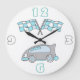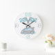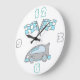 Cute Blue Race Car and Race Flags Boy Large Clock