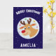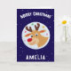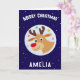 Cute Blue Reindeer Kid`s Name Merry Christmas Card