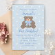 Cute Blue Ribbon Baby Teddy Bear First Birthday Invitation