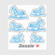 Cute Blue Rocking Horse Drawing Kids Sticker. The design has blue rocking horse toys.
