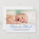 Cute Blue Script Photo Baby Announcement