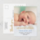 Gold Script Our Newest Addition Blue Baby Baby Boy Photo Birth Announcement Postcard with personalised thank you message on back for the support and gifts.
