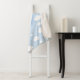 This design features cute little white cloud pattern on pastel blue sky background with monogram and name in modern script font style.