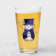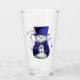 A cute blue Christmas glass with a figure of a snowman, dressed very formally in blue velvet coat and top hat. He has shiny black buttons and bows and stars hanging from his hat. This glass would make a lovely Christmas gift, or a very festive addition to your own home for the holidays this season.