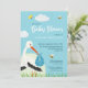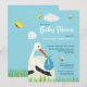 Cute Blue Stork Baby Shower Invitation