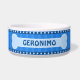 Dog Paw and Bone © Sunny Mars Designs. Cute, stylish custom name customisable large pet dog bowl featuring a gorgeous blue stripes and polka dots design with dog paw and dog bone to place your dog's name on it. Perfect gift for man's best friend. Other colours available.