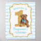 Cute Blue Strips Teddy Bear 1st Birthday Poster