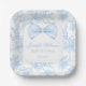 Cute Blue Toile Floral Bow Tie Baby Boy Shower Paper Plate
