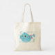 carry your essentials in style with this adorable blue fish tote bag. the whimsical marine life illustration is printed on durable fabric, making it a perfect companion for trips to the beach, the grocery store, or the library. with its bright yellow eyes and sweet pink floral headpiece, this tropical fish character adds a touch of personality to your daily errands. it is a practical and fun gift for ocean lovers and fans of cute animal accessories.