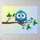 Cute blue twitter bird cartoon poster