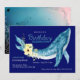 Elegant, ocean themed birthday party invitations featuring a painted watercolor whale adorned with yellow flowers and green leaves on navy blue background. Personalise the cute whale birthday party invitations by adding the birthday girl or boy's name, age, and party details.