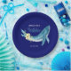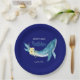 Cute Blue Whale Yellow Floral Navy Birthday Party Paper Plate