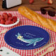 Elegant, ocean themed birthday party paper plates featuring a painted watercolor whale adorned with yellow flowers and green leaves on navy blue background. Perfect for serving up cake, snacks, or even a light meal, these plates feature a charming design that's sure to bring smiles to your guests' faces.