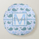 Cute Blue Whales Pattern Monogram Round Cushion
