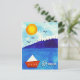 CUTE BLUE WHITE RED WATERCOLOR GREEK BOAT POSTCARD