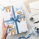 This Christmas gift wrap paper is sure to make your little one smile this holiday season with its cute and funny pattern. This design features a simple white background with a cute reindeer who has a pretty blue scarf around his neck and a and a fluffy blue and white hat. Perfect Christmas wrapping paper for either a boy or a girl.