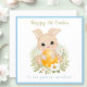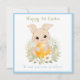 The cutest Easter bunny with an Easter egg in yellow and blue first Easter card for baby boy. Easily personalise this Easter card with your own text. - Kate Eden Art.