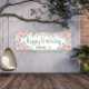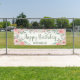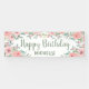 Cute "Happy birthday" outdoor (or purchase one for indoors) banner for your springtime or summer birthday party celebration. Beautiful blush pink watercolor flowers and sage green leaves on a white background. Personalised with the name of the guest of honour.