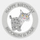Cute bobcat lynx cartoon personalised birthday classic round sticker