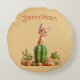 Cute Bobcat on cactus Round Cushion