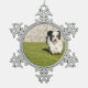 Cute Bobtail Sheepdog Snowflake Pewter Christmas Ornament