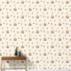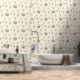 Cute boho-inspired cream wallpaper for your baby girl's nursery featuring watercolors of circus tents, lions, monkeys and a little fortune-telling girl.