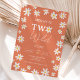 She is two wild! Celebrate your little one's 2nd birthday with our adorable terracotta boho daisy flower party invitation! Featuring a cute earth tone rainbow design saying one with a heart shaped daisy flower, this invite is perfect for a wild and fun celebration with friends and family.