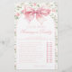 Sophisticated classic "Guess who? Mummy or Daddy" game designed for a boho baby girl shower, adorned with a charming pastel pink bow, ribbon on bohemian arch and blush pink floral rose pattern in the background. Engage your guests with this delightful game, perfect for adding fun and excitement to your celebration while creating cherished memories.
