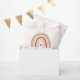 Here it's a cute boho rainbow kids 1st birthday favour bag design. Boho rainbow in muted earthy tone colours and has cute little pastel heart in the centre of the rainbow. This cute design has modern and fun typography and all the text here is easily customisable.
