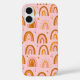 Cute Boho Rainbow Hearts Pattern in Pink Orange Case-Mate iPhone Case